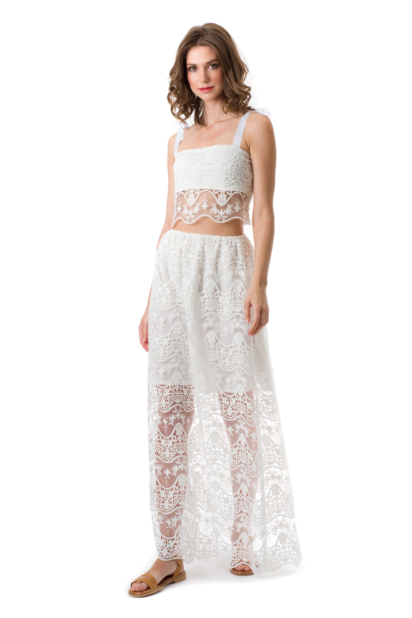 SET TOP ΦΟΥΣΤΑ ΜΑΞΙ ΔΑΝΤΕΛΑ WHITE
