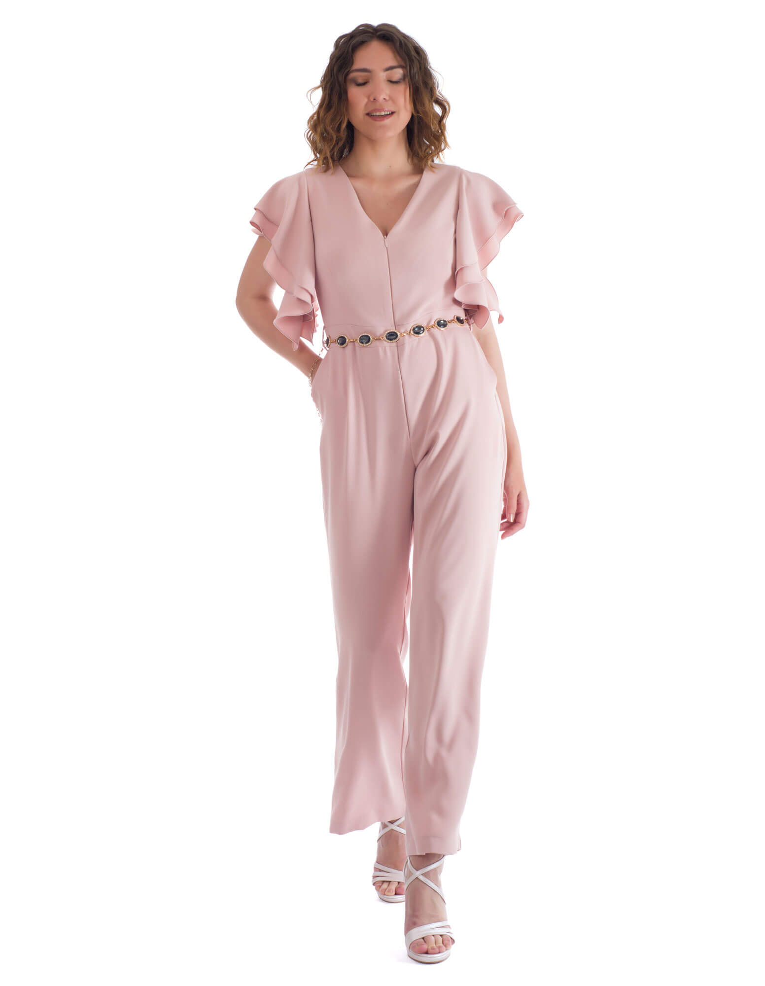 ΓΥΝΑΙΚΕΙΑ ΟΛΟΣΩΜΗ ΦΟΡΜΑ ΣΕ CREM COLOR (Jumpsuit) ΦΑΡΔΥ ΠΑΝΤΕΛΟΝΙ & ΨΗΛΗ ΜΕΣΗ