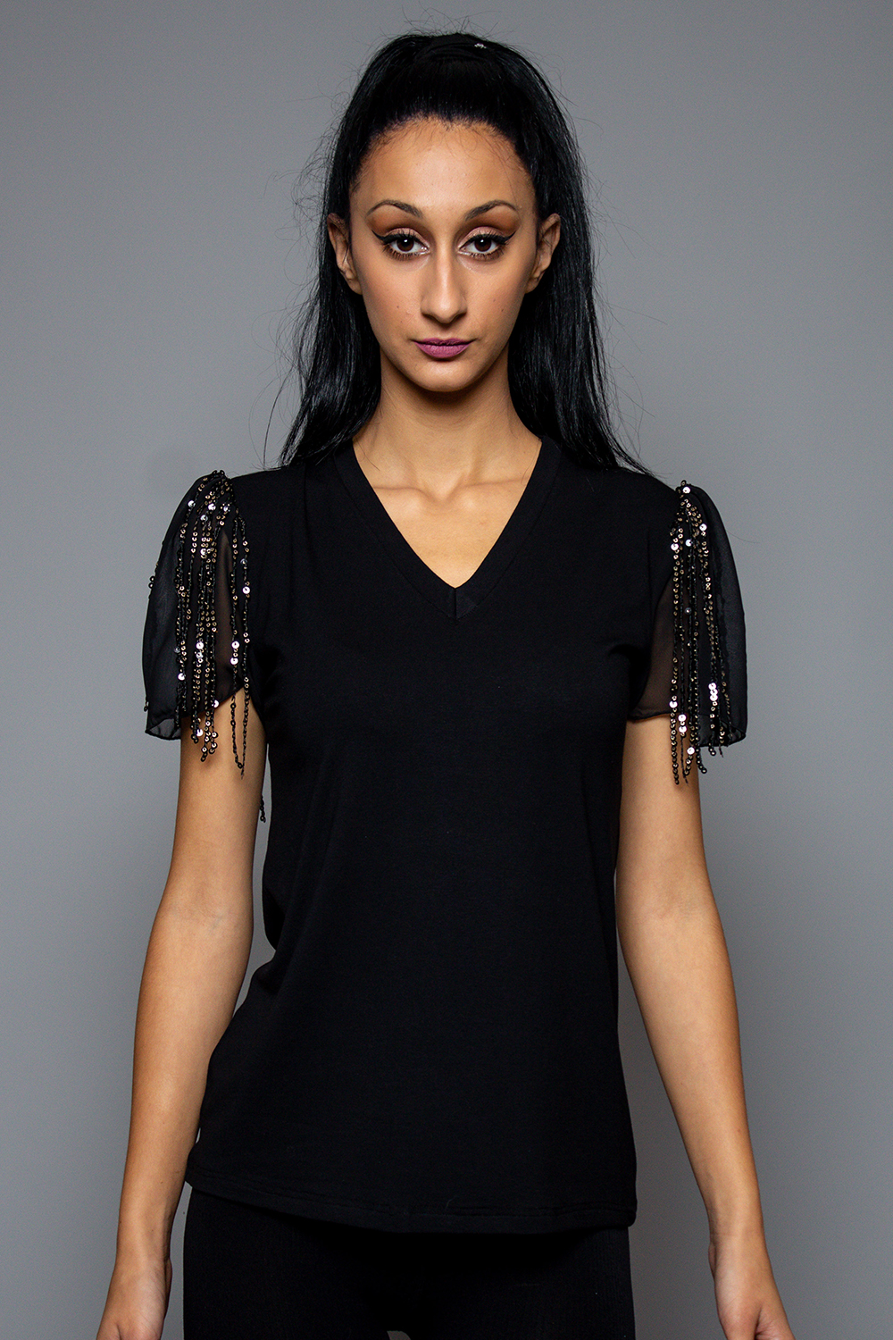 ΜΠΛΟΥΖΑ ΜΑΥΡΗ ΜΕ ΒΑΘΥ ΧΑΜΟΓΕΛΟ