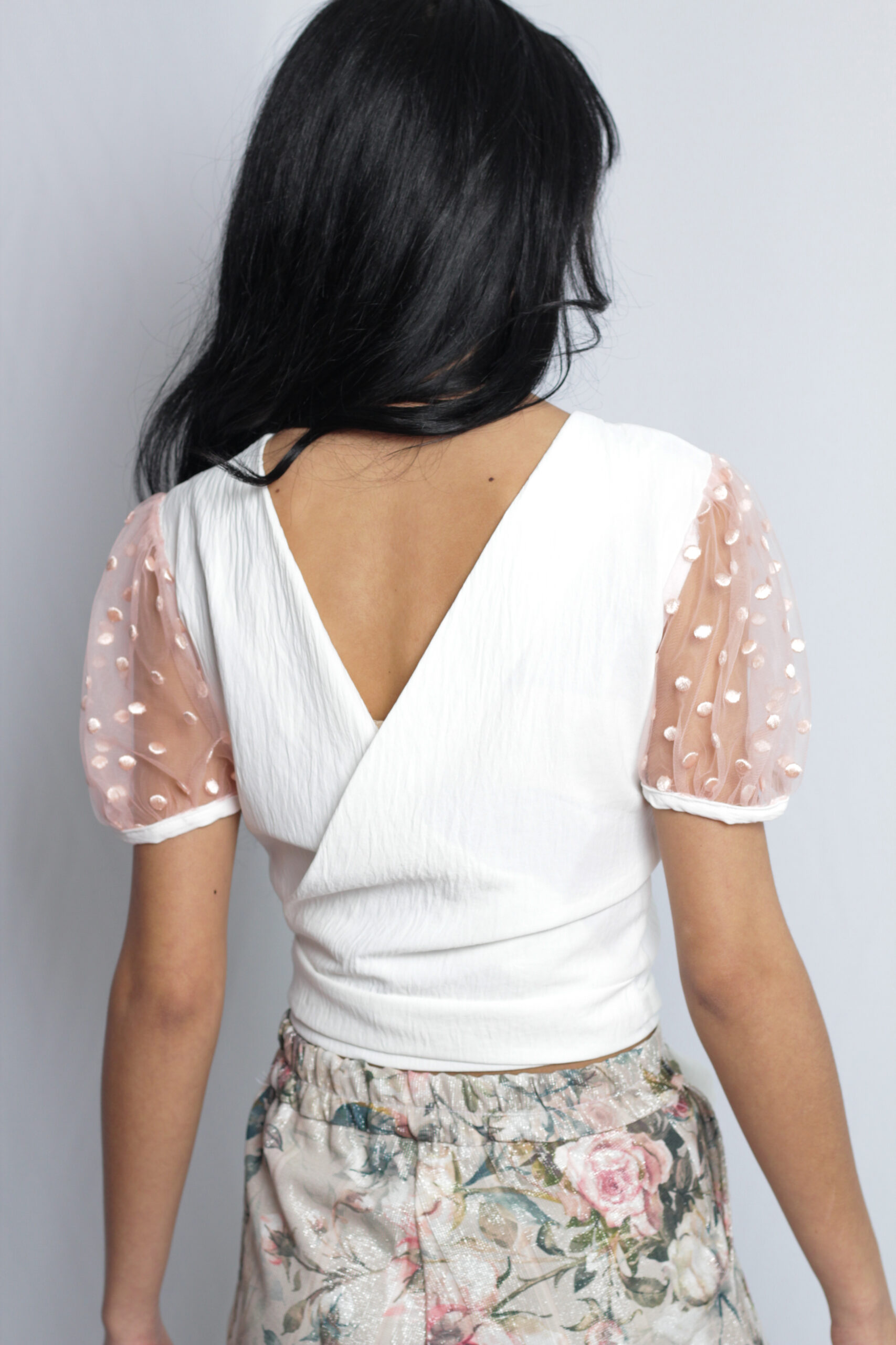 ΜΠΛΟΥΖΑ ΑΣΠΡΗ ΜΕ ΜΑΥΡΟ ΦΟΥΣΚΩΤΟ ΜΑΝΙΚΙ
