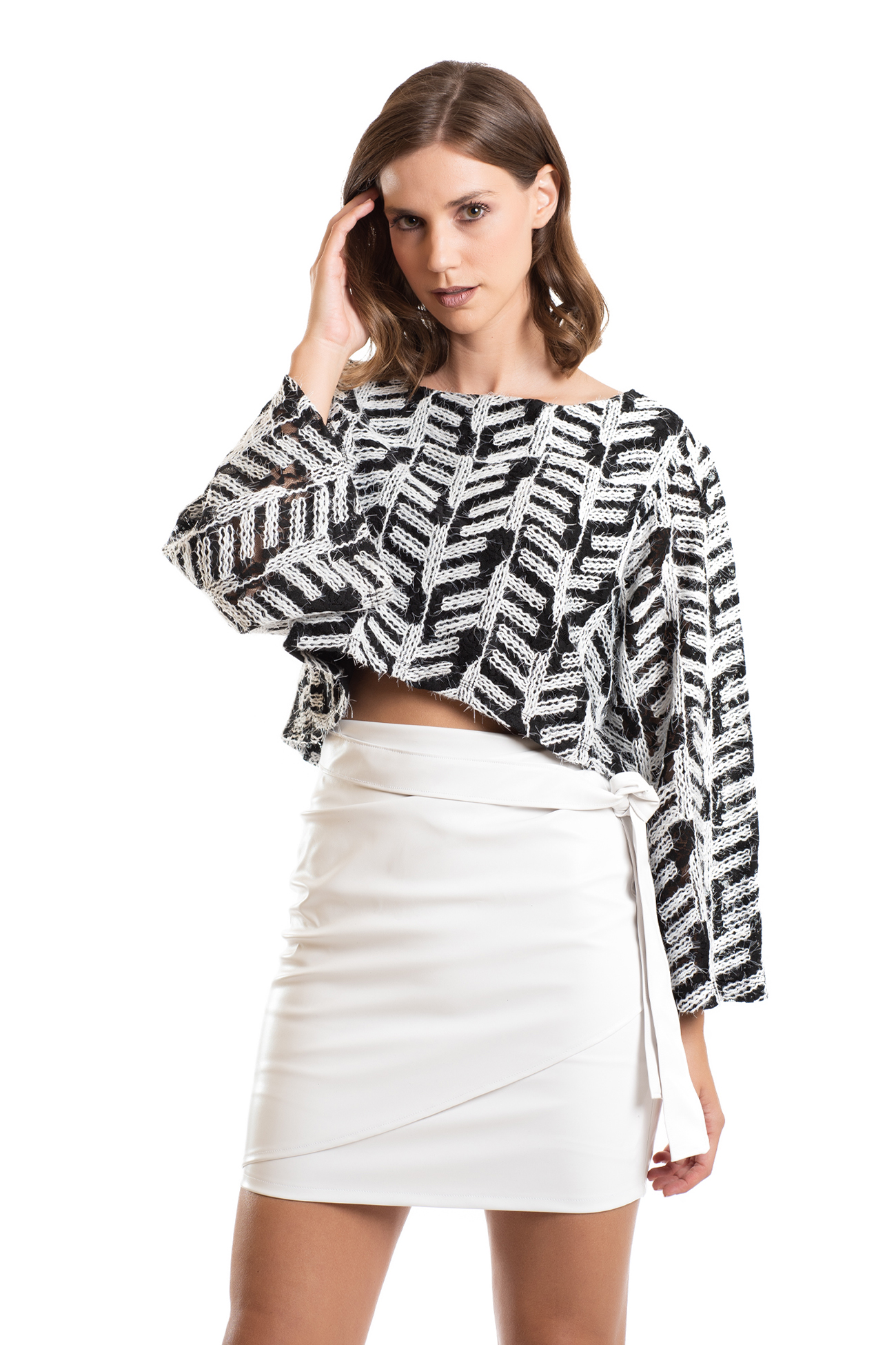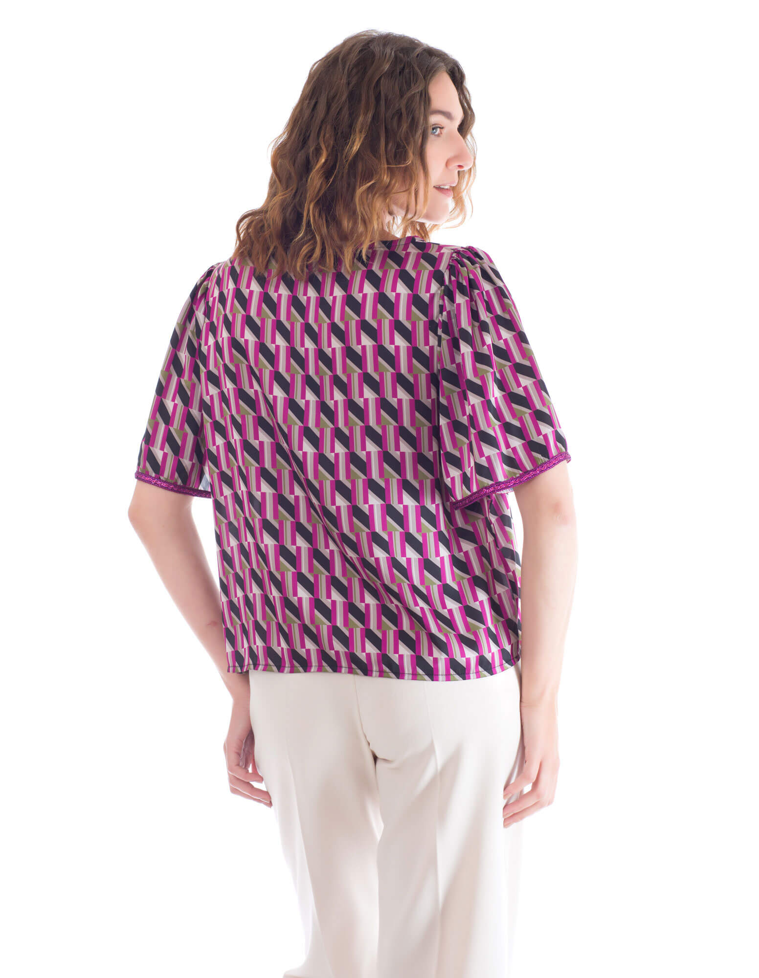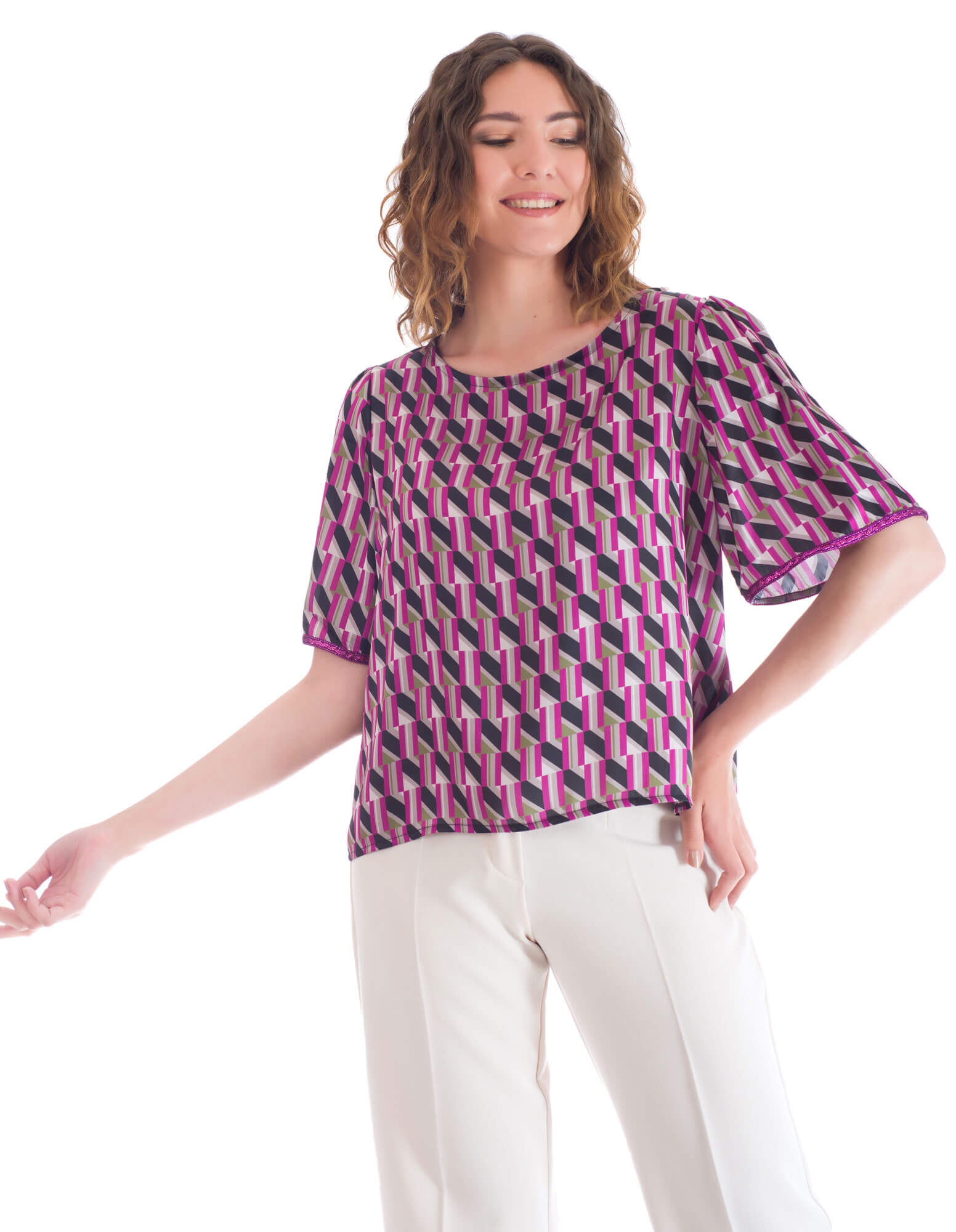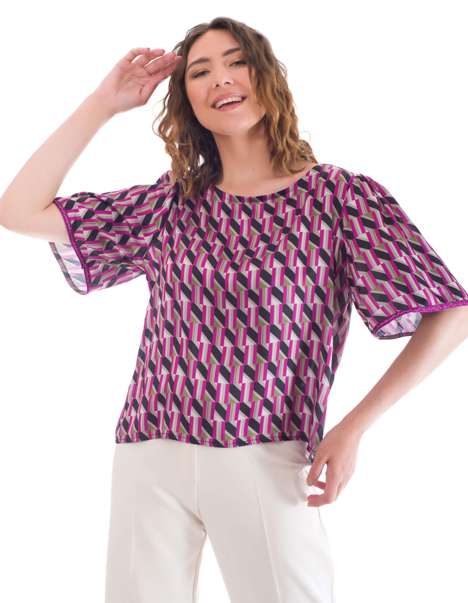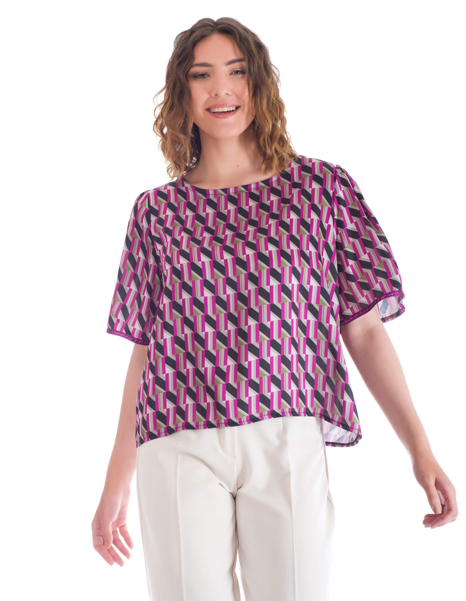 Άνετη μπλούζα με κοντό μανίκι και διακοσμητική τρέσα στο τελείωμα του.
