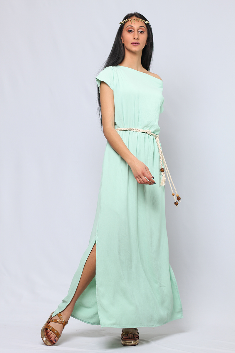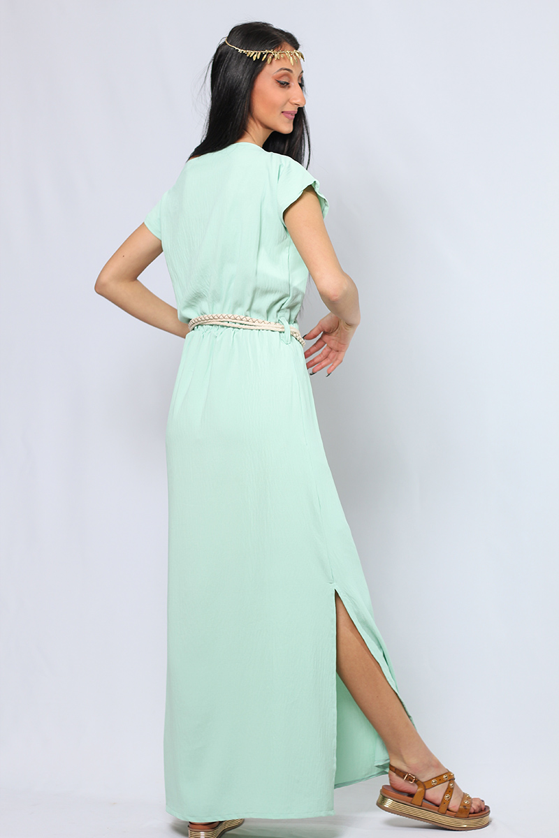 Μaxi φόρεμα χαμόγελο σε υπέροχο καλοκαιρινό χρώμα, άνεση στην καθημερινότητα σου με σκίσιμο δεξιά αριστερά και λάστιχο μαλακό στη μέση.