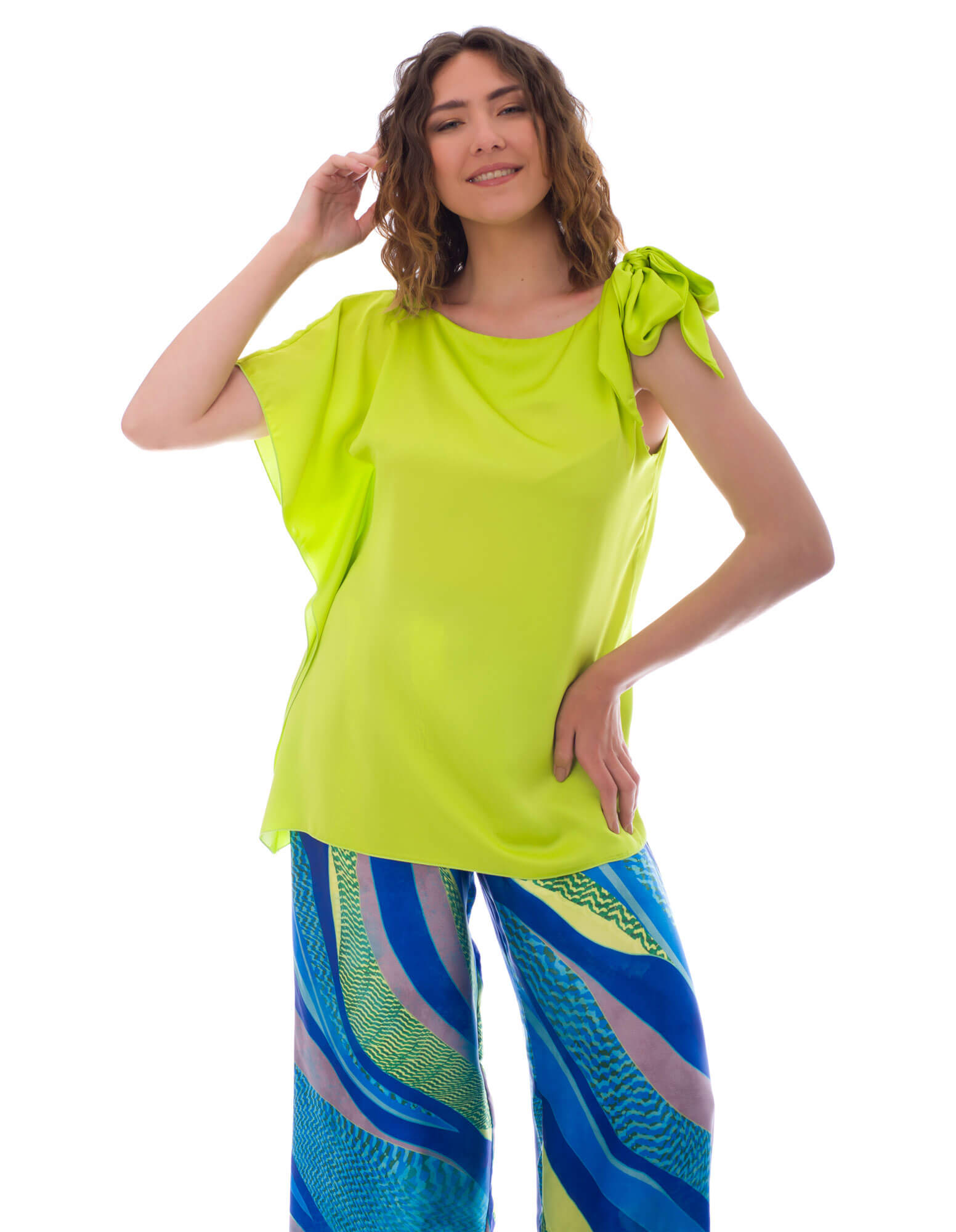 Σατινέ Giasmin μπλούζα σε υπέροχο καλοκαιρινό χρώμα, άνεση design στυλ.