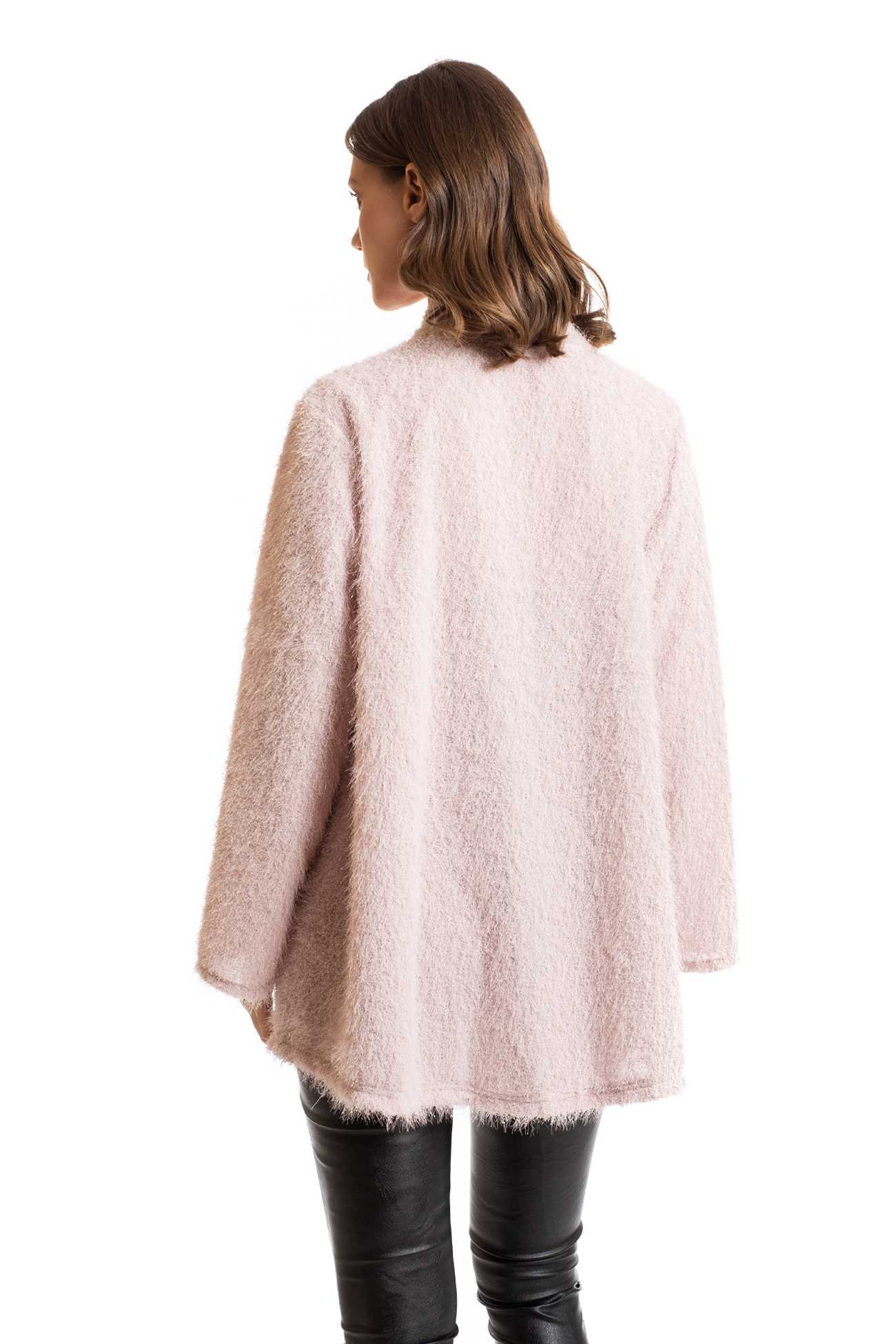 Έχει χαλαρή και άνετη εφαρμογή, ανοιχτό το μπροστινό μέρος με μικρό γιακά στο λαιμό και διακριτικό επάνω κούμπωμα. Υφή: Χνουδωτή