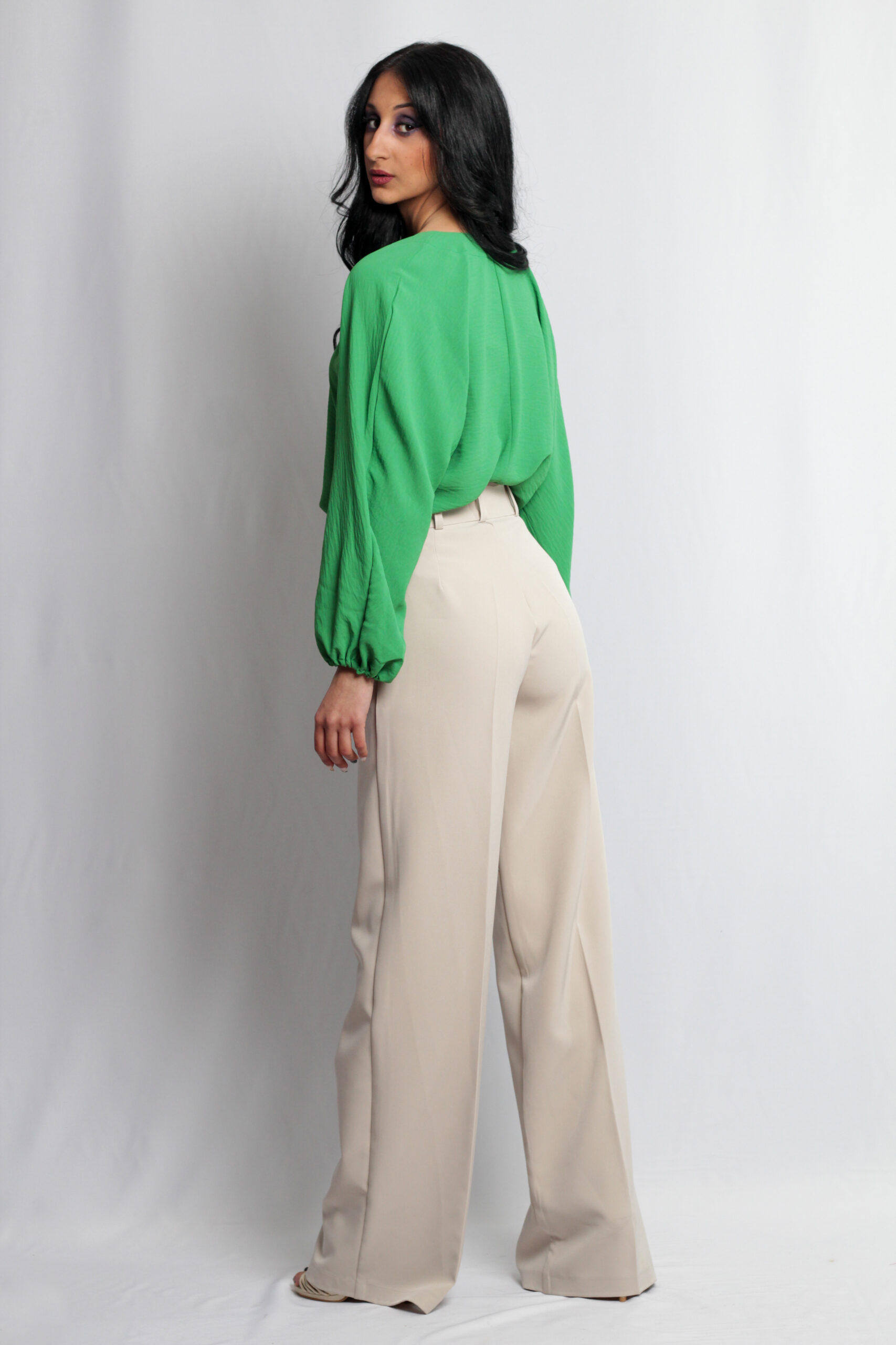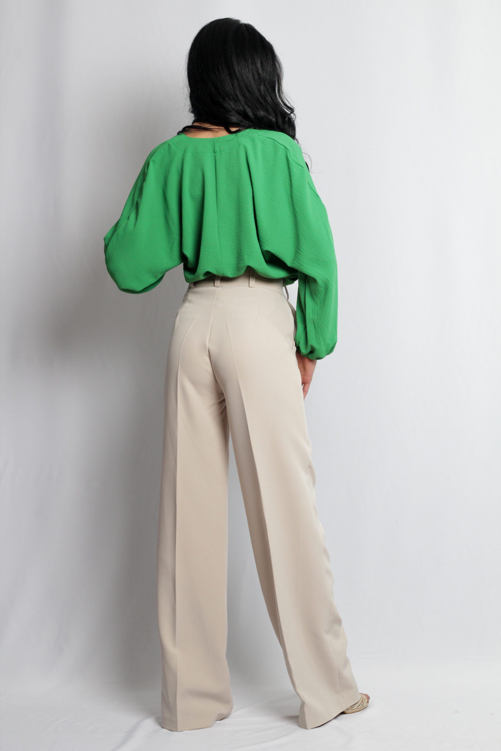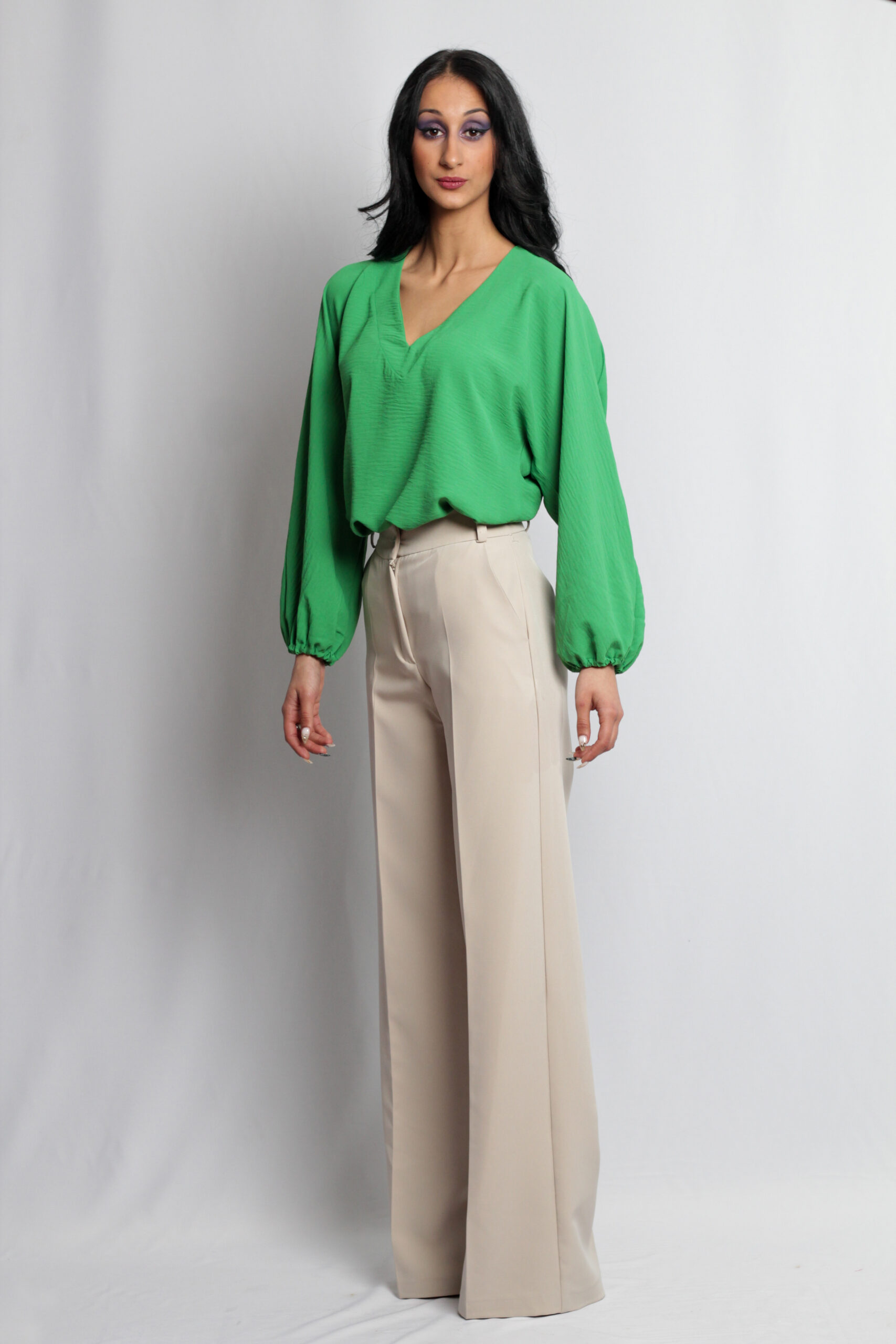 Παντελόνα ψηλόμεση σε ίσια γραμμή με τσάκιση & μπροστινές τσέπες.
