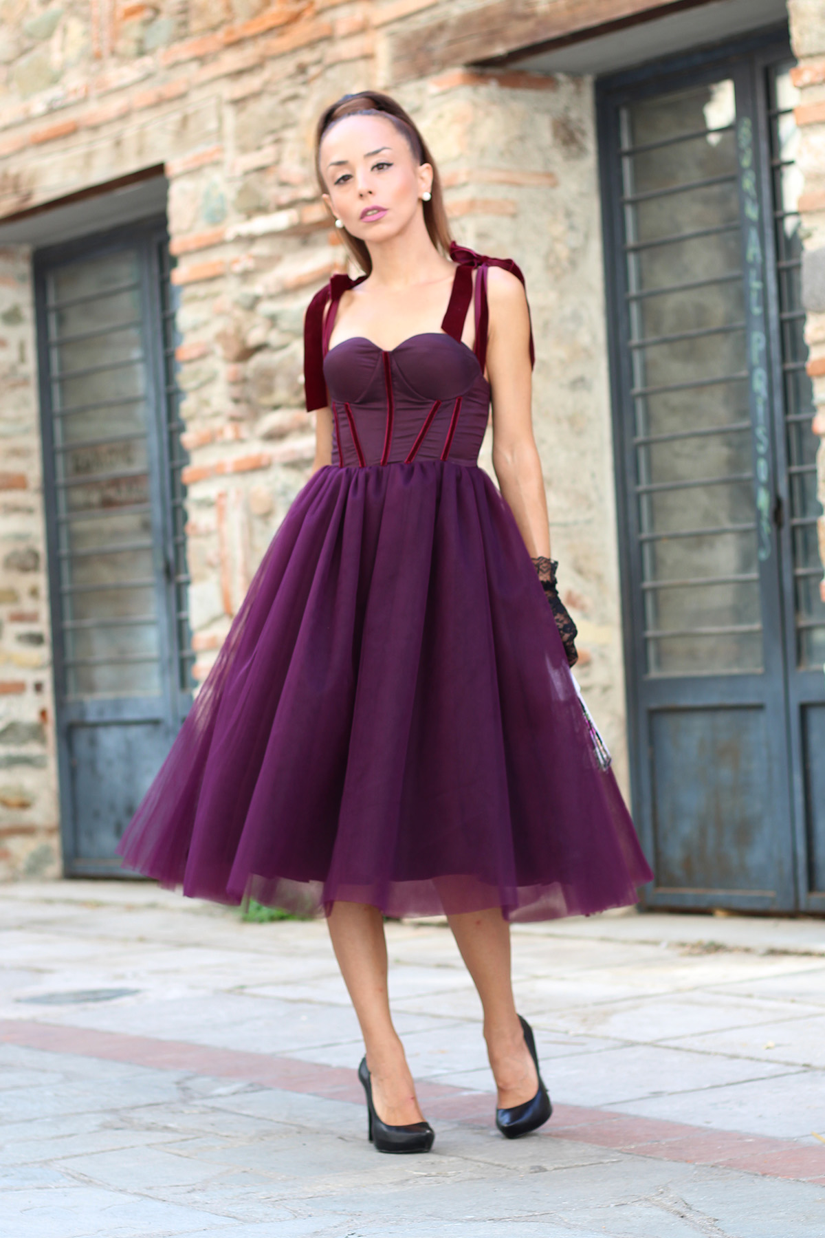 Το απόλυτο MIDI Corset φόρεμα το οποίο έχει 60’s χαρακτήρα. Το μπούστο αποτελείται απο έναν κορσέ με ενσωματομένες μπαλένες & εσωτερική ενίσχυση των caps στο στήθος. Στους ώμους διακοσμούν βελούδινες ράντες. Το κάτω μέρος της φούστας είναι δημιουργιμένο με στρώσεις απο τούλι και εσωτερική φόδρα. Το χρώμα του μοναδικό, ιδανικό για εξόδους και social events.