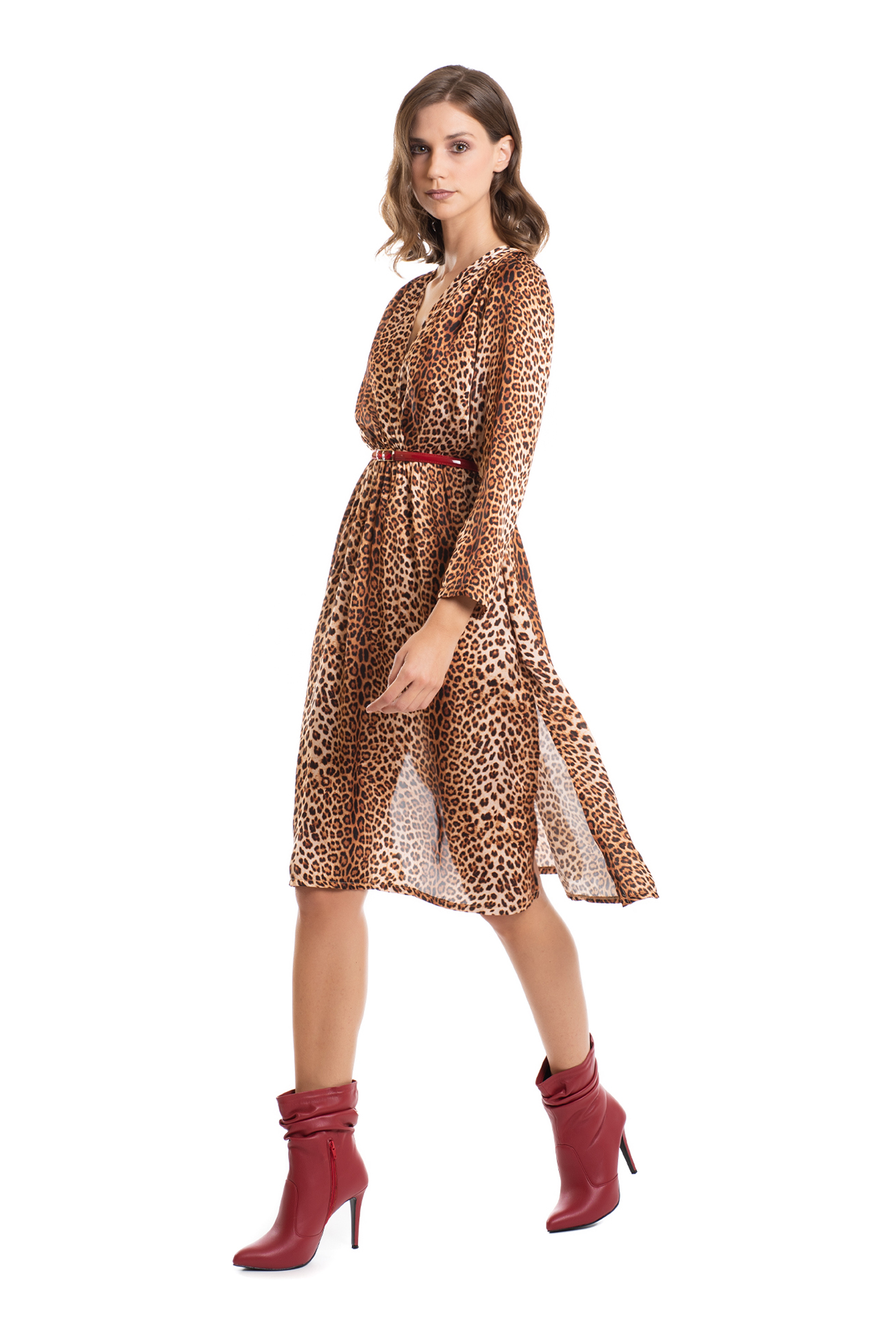 Φόρεμα satin animal print. Μακρυμάνικο με σούρες που ξεκινούν από τον ώμο και καταλήγουν στο μπούστο. Ίσια εφαρμογή με λάστιχο στη μέση. Φθάνει κάτω από το γόνατο με πλαϊνά σκισίματα. Το ξεχωριστό του print απογειώνει το στυλ σας κάτι που αξίζει να τολμήσετε!