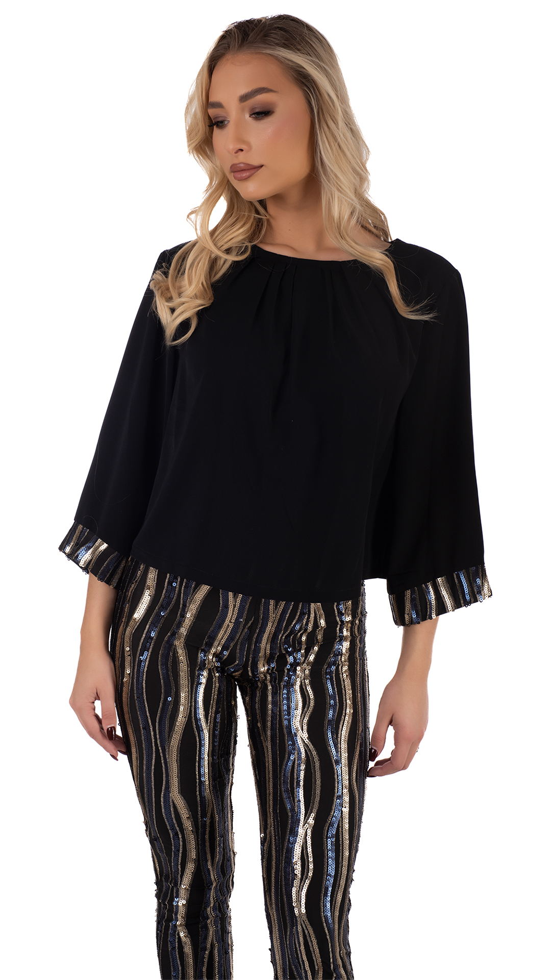 ♥το μανίκη 3/4 που το διακοσμεί τρίχρωμη παγιέτα