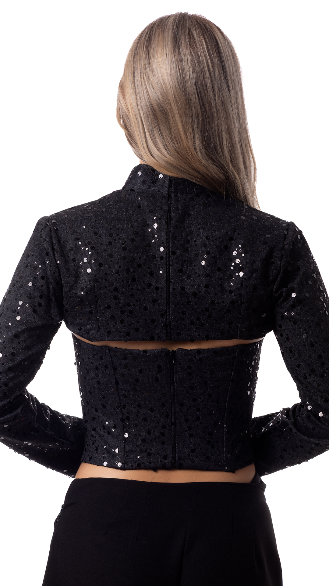 Διατίθεται στις βασικές, νυχτερινές αποχρώσεις του Μαύρου. Το Μαύρο Μπολερό με Παγιέτες είναι η επιτομή της κομψότητας και της διαχρονικότητας. Το ύφασμα με τις παγιέτες εξασφαλίζει δυναμική κίνηση και συνεχή λάμψη κάτω από το φως.