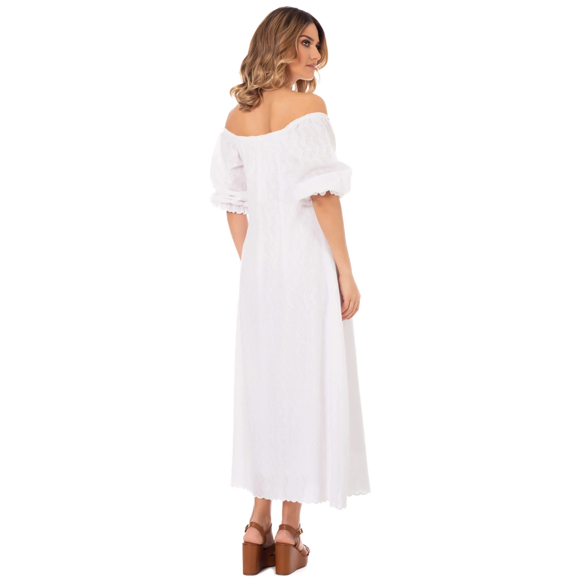 Broderie φόρεμα. Ένα αγαπημένο και διαχρονικό βαμβακερό ύφασμα σε λευκό χρώμα.