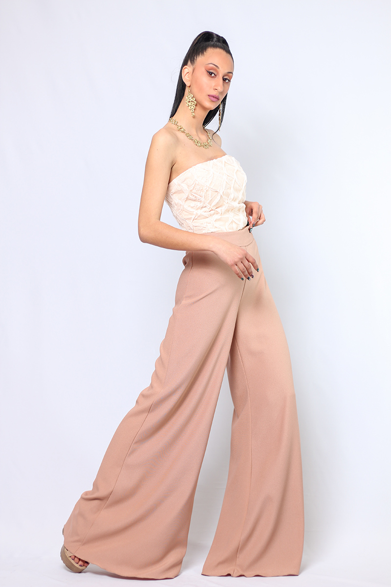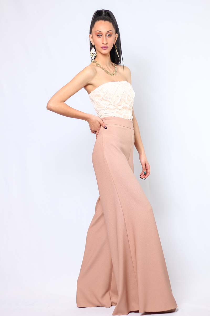 Crem παντελόνα ψηλόμεση, πλαϊνό φερμουάρ.