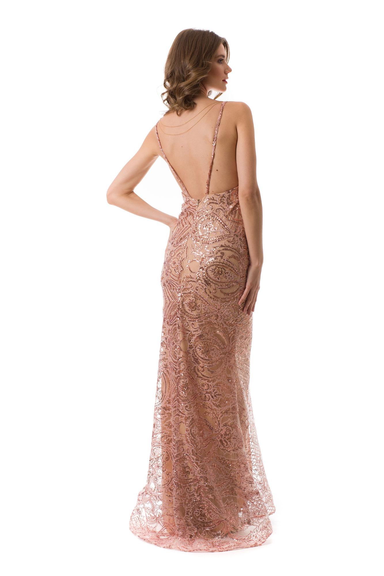 Δημιουργήσαμε το φόρεμα κόσμημα για ιδιαίτερες εμφανίσεις σας. Η γραμμή του φανερά αναδεικνύει τις καμπύλες σας και την θηλικότητά σας. Αποτελεί εσωτερικά καψ. Λεπτή ράντα που καταλήγει στην αισθησιακή πλάτη που την διακοσμούν λεπτή αλυσίδα.