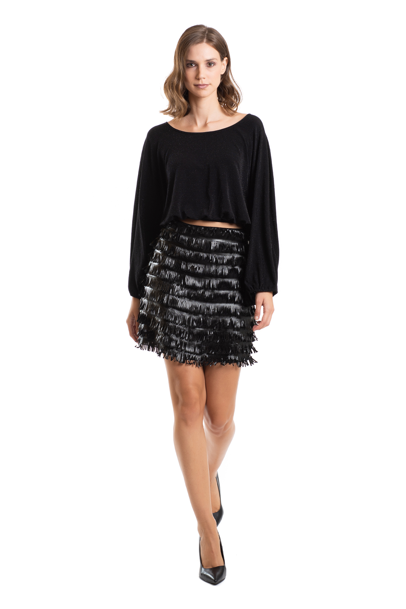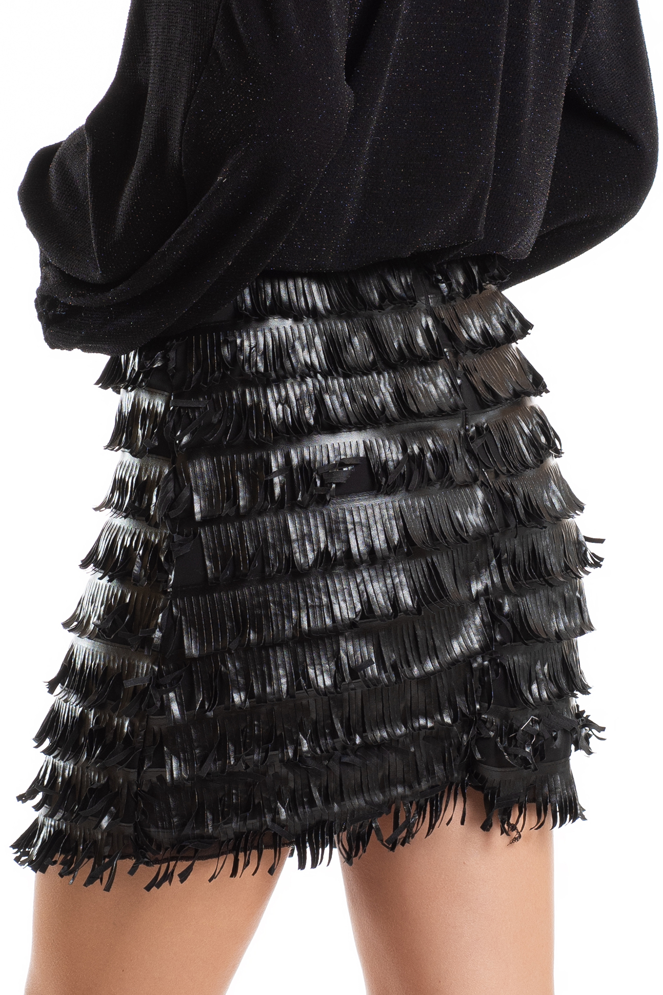 Φούστα mini δερματίνη με κρόσια που σας ταξιδεύει στην εποχή του 60′. Σχεδιασμένη να χαρίζει κίνηση και άνεση.