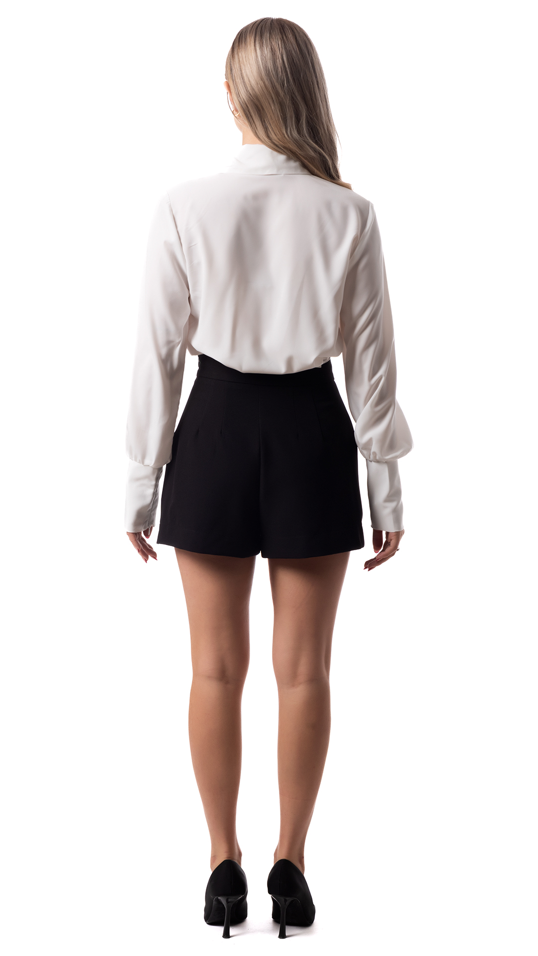 Η γραμμή του είναι καθαρή και δομημένη, θυμίζοντας σαρτς-παντελόνι (skort/dress shorts), καθιστώντας το ιδανικό για πιο επίσημες ή business-casual εμφανίσεις. Διαθέτει πλαϊνές τσέπες για πρακτικότητα και κλείνει με κρυφό φερμουάρ. Συνδυάστε το με πουκάμισα για ένα office look ή με τοπ και crop tops για βραδινές εξόδους.