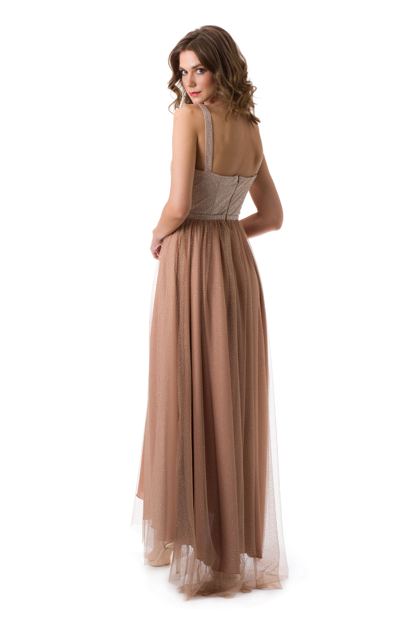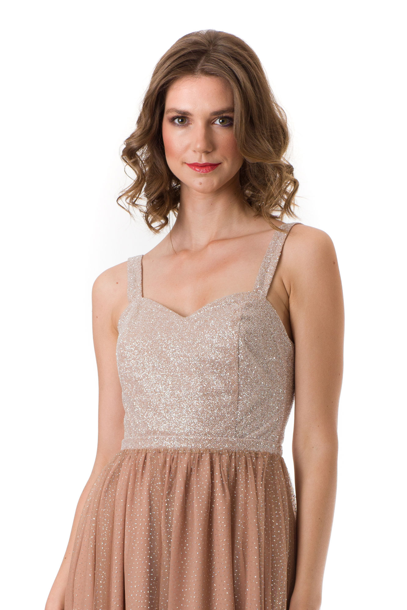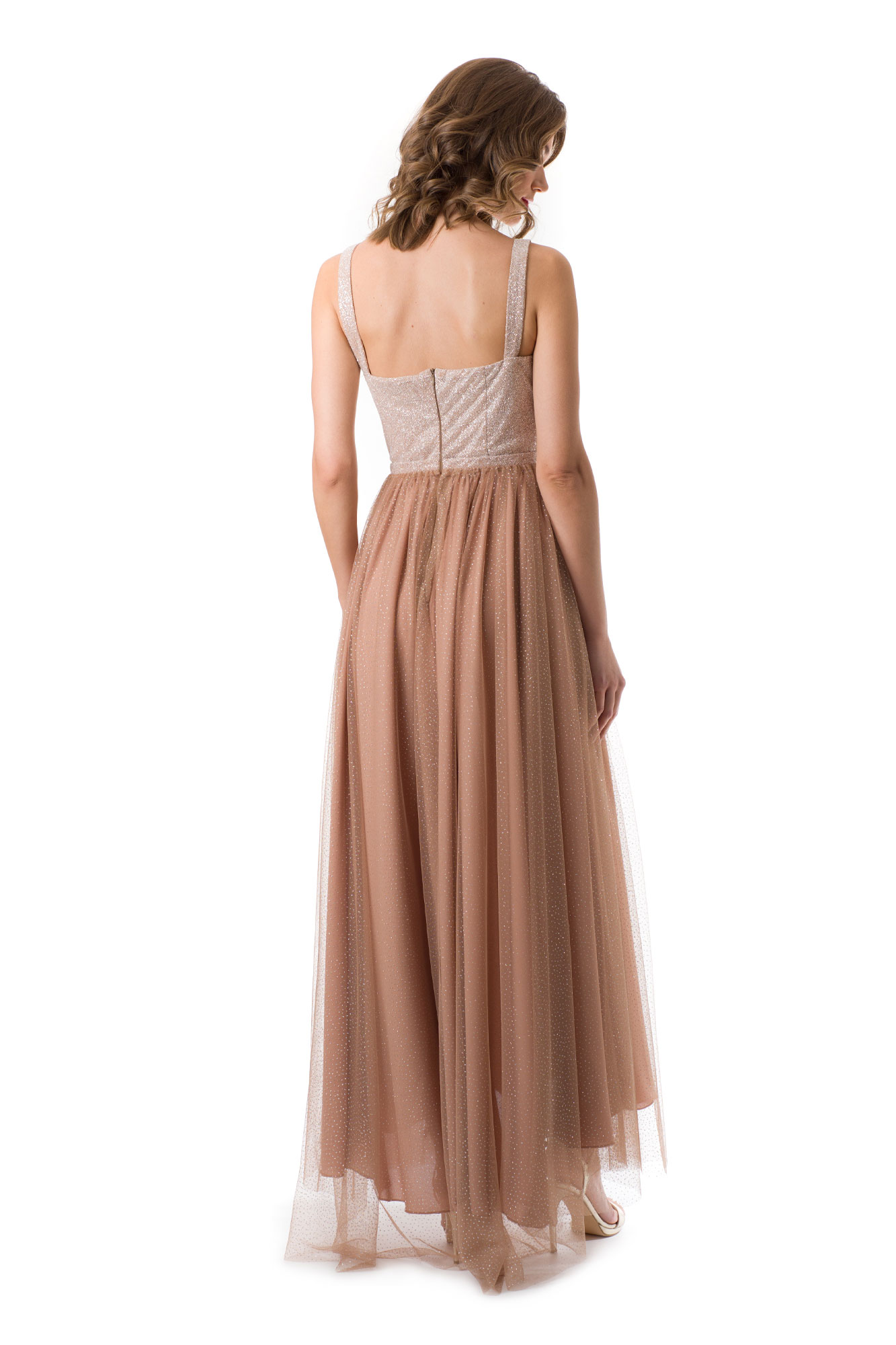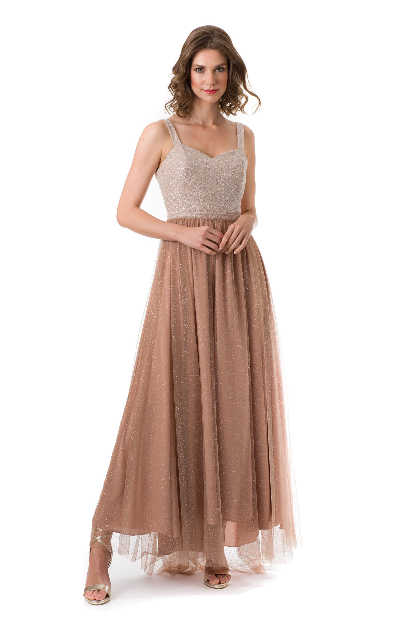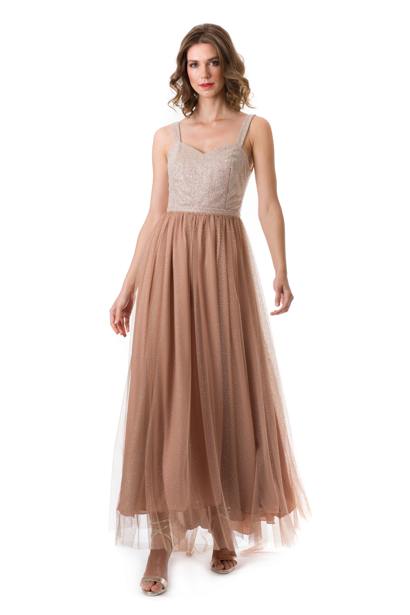 Η συνέχεια της φούστας από τούλινο gold απόχρωση με λάμψη και αέρινη κίνηση.