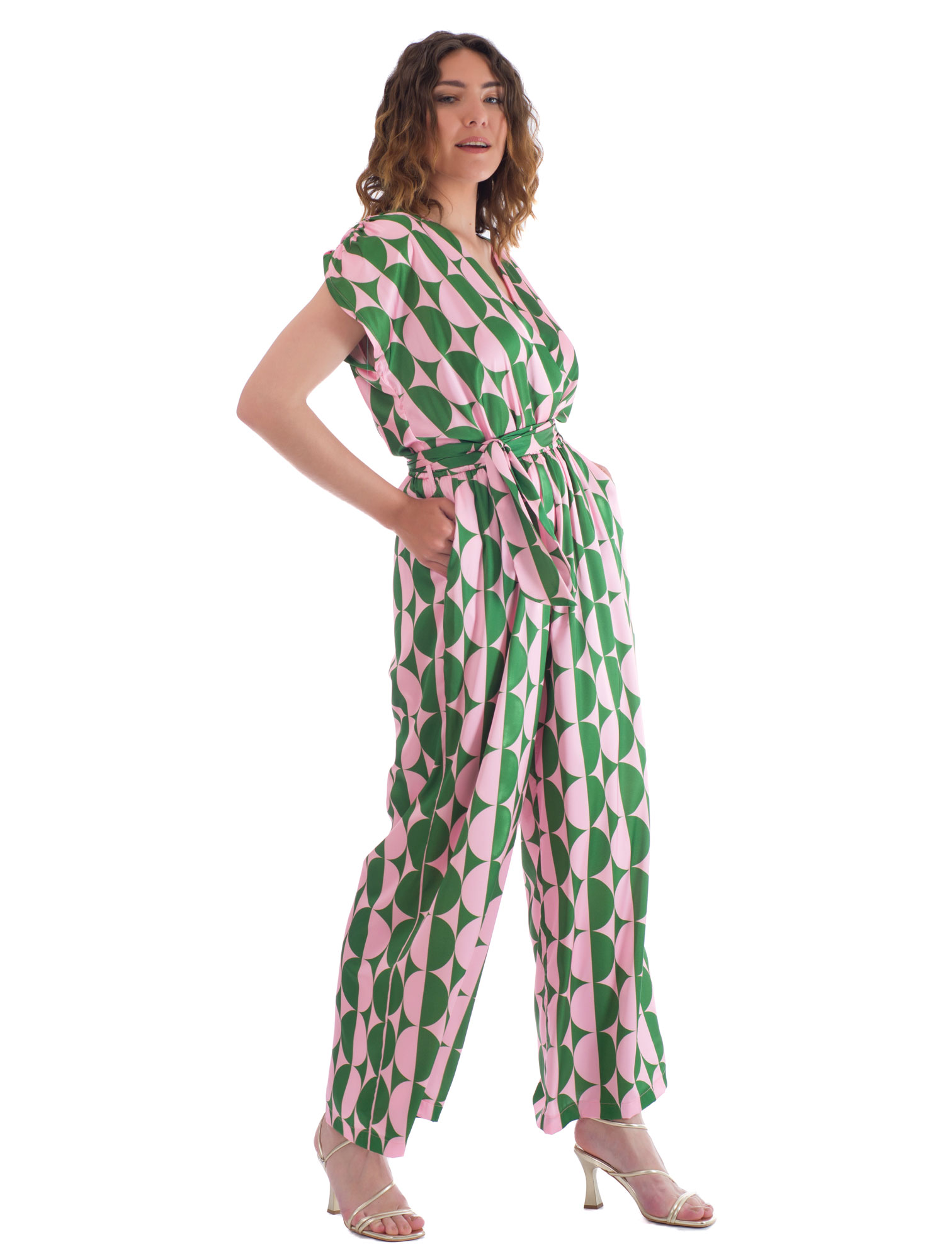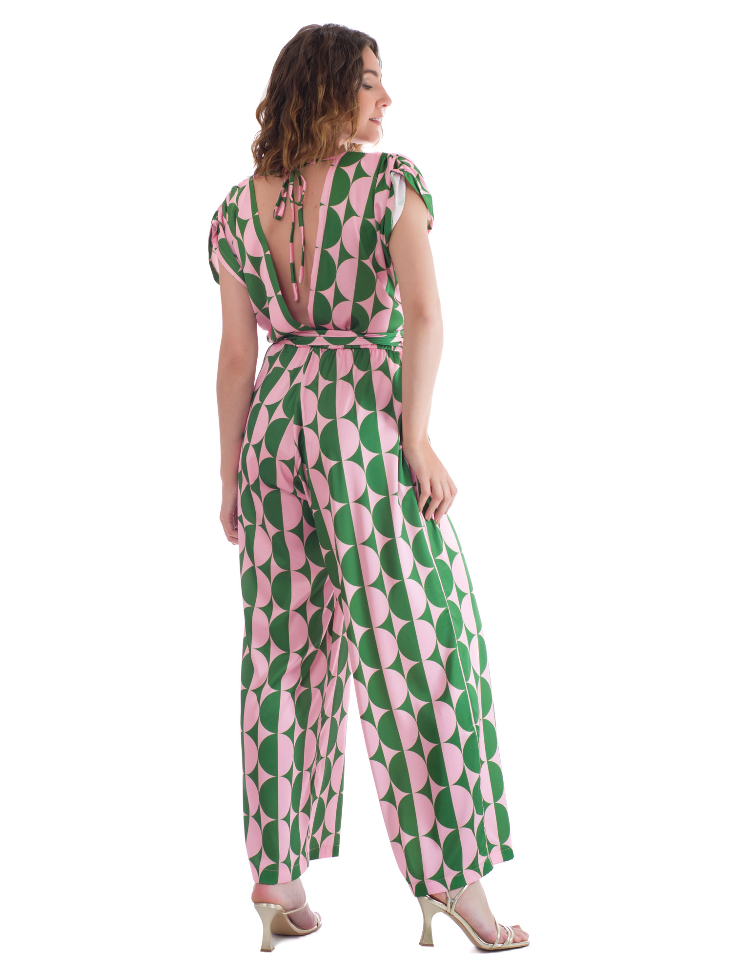 Δημιουργήσαμε την ολόσωμη φόρμα σε άνετη φαρδιά γραμμή σε υπέροχο καλοκαιρινό εμπριμέ print. Κρουαζέ μπούστο που κολακεύει και πλάτη τόσο όσο με ρυθμιζόμενο κορδόνι, μικρό μανίκι και ζώνη.