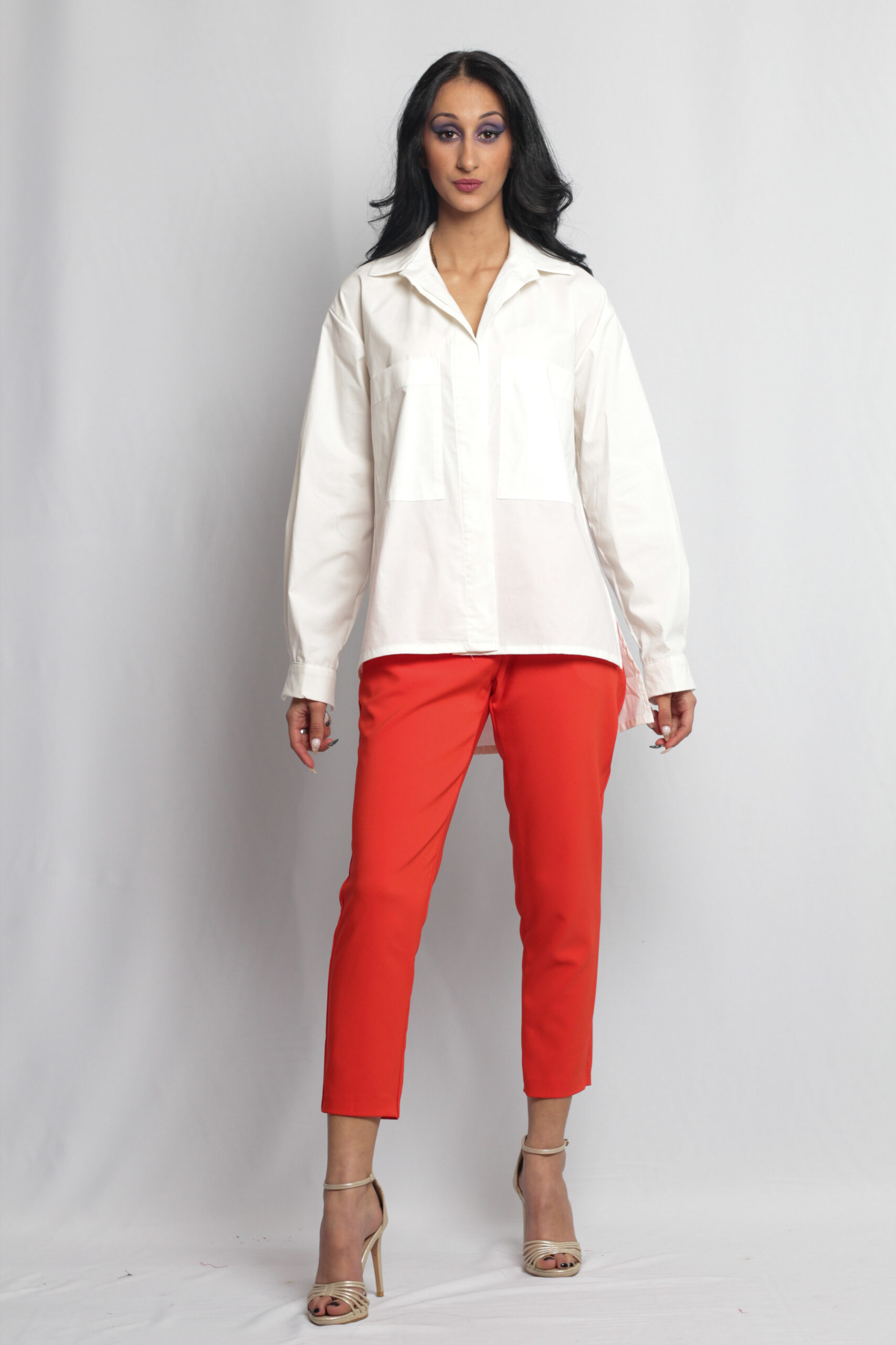 Πουκαμισο με γιακα και μεγαλες τσεπες ,ασυμετρο πλαινες σκισιμο.