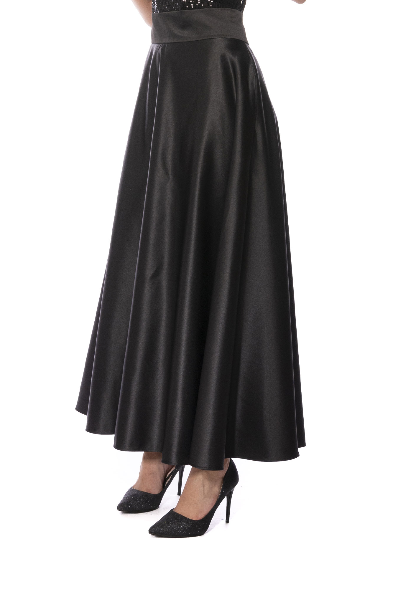 Ψηλόμεση φούστα κλος με φαρδύ ζωνάρι και τσέπες. Το ύφασμα του σατινέ που του δίνει τον απόλυτη ELEGANT χαρακτήρα. Για EVENTS και ειδικές περιστάσεις.