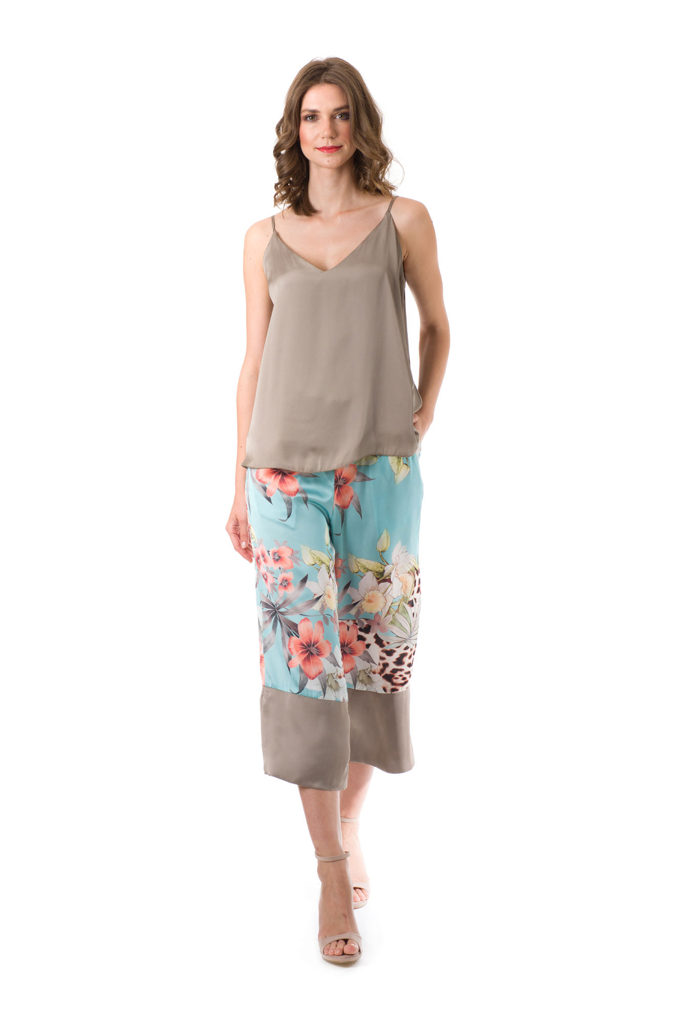 Σε συνδυασμό με το νεγκλιζέ τοπ σε loose γραμμή από σταθερό σατέν ύφασμα με αιθέρια κίνηση.