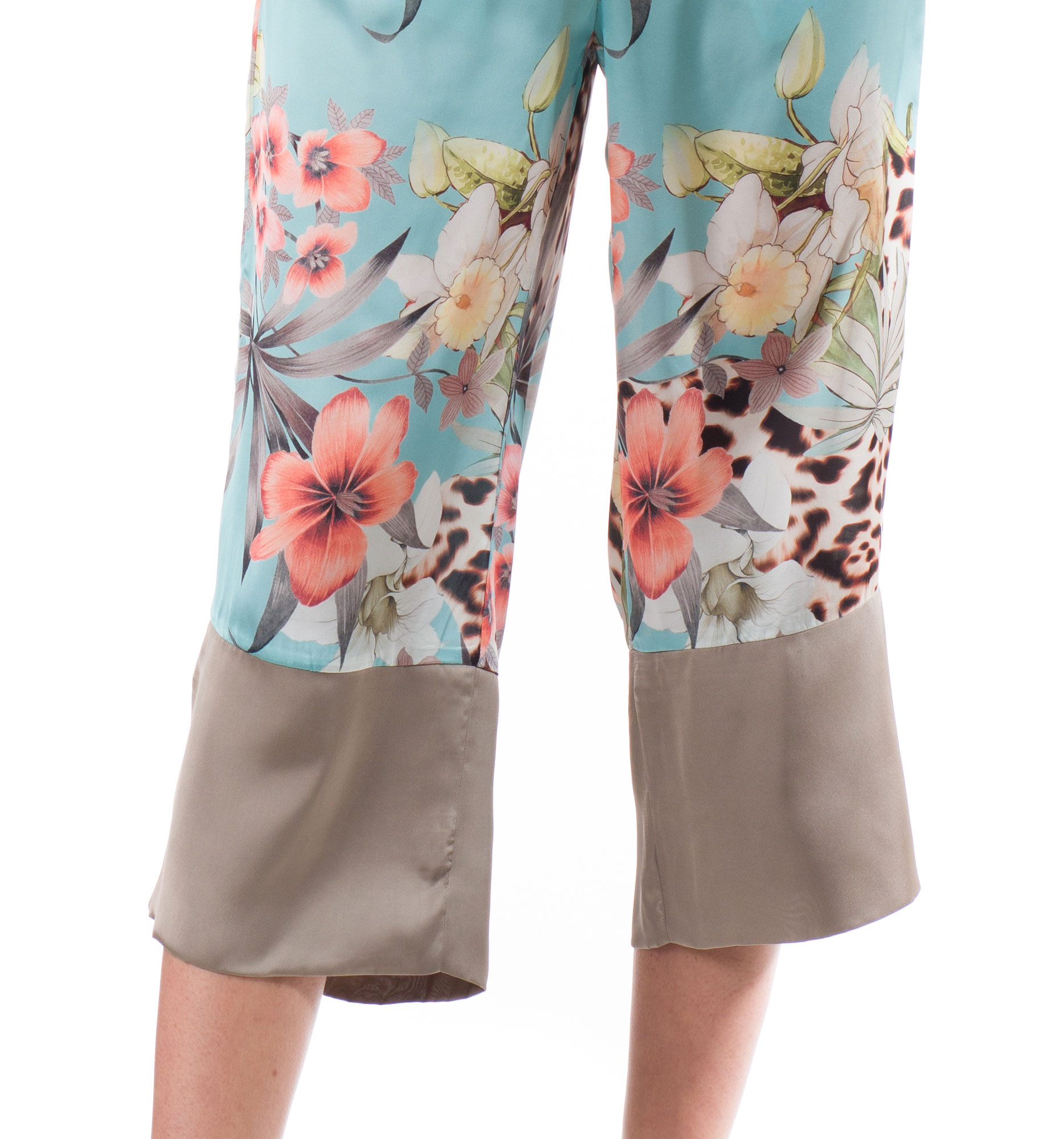 Το σετ αυτό αποτελείται από φαρδιά ζιπ-κιλότ παντελόνα με ζωνάρι, κουμπιά, φερμουάρ και τσέπες.