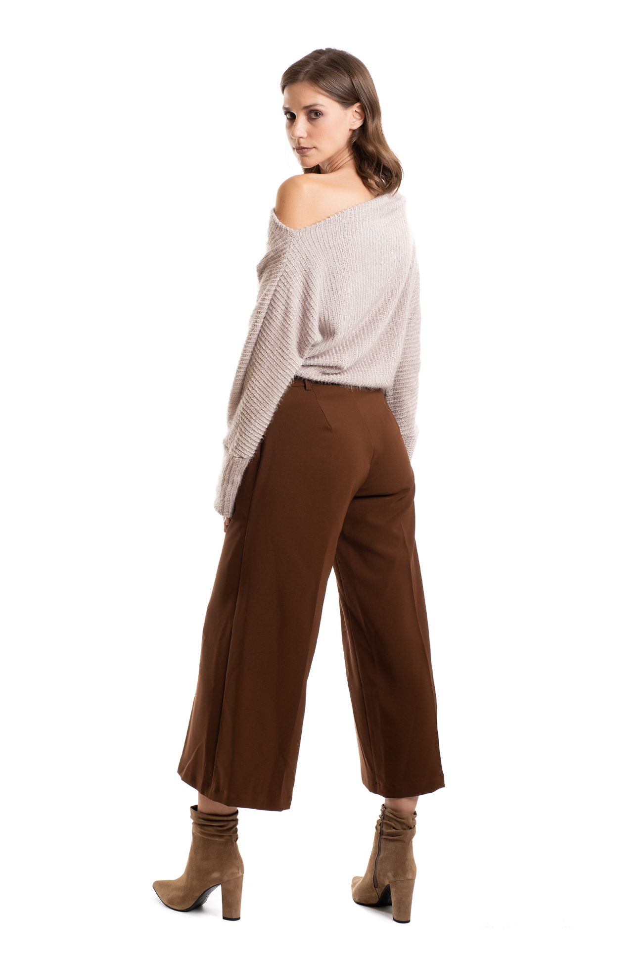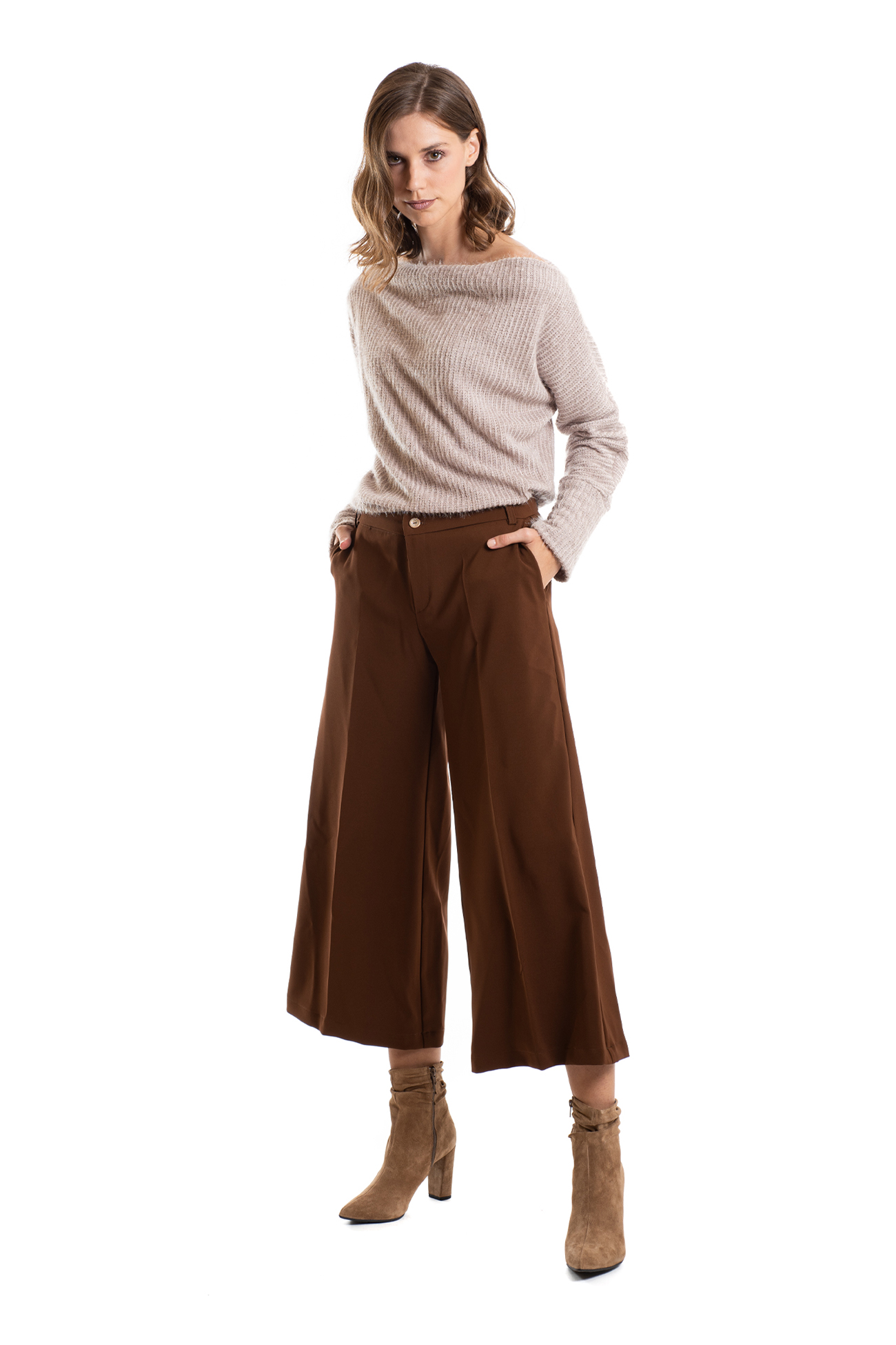 Ψηλόμεσο παντελόνι Ζιπκιλότ. Μπροστινές τσέπες με φαρδύ μπατζάκι. Ζωνάρι με θηλύκια και μπροστινό φερμουάρ με πατιλέτα.